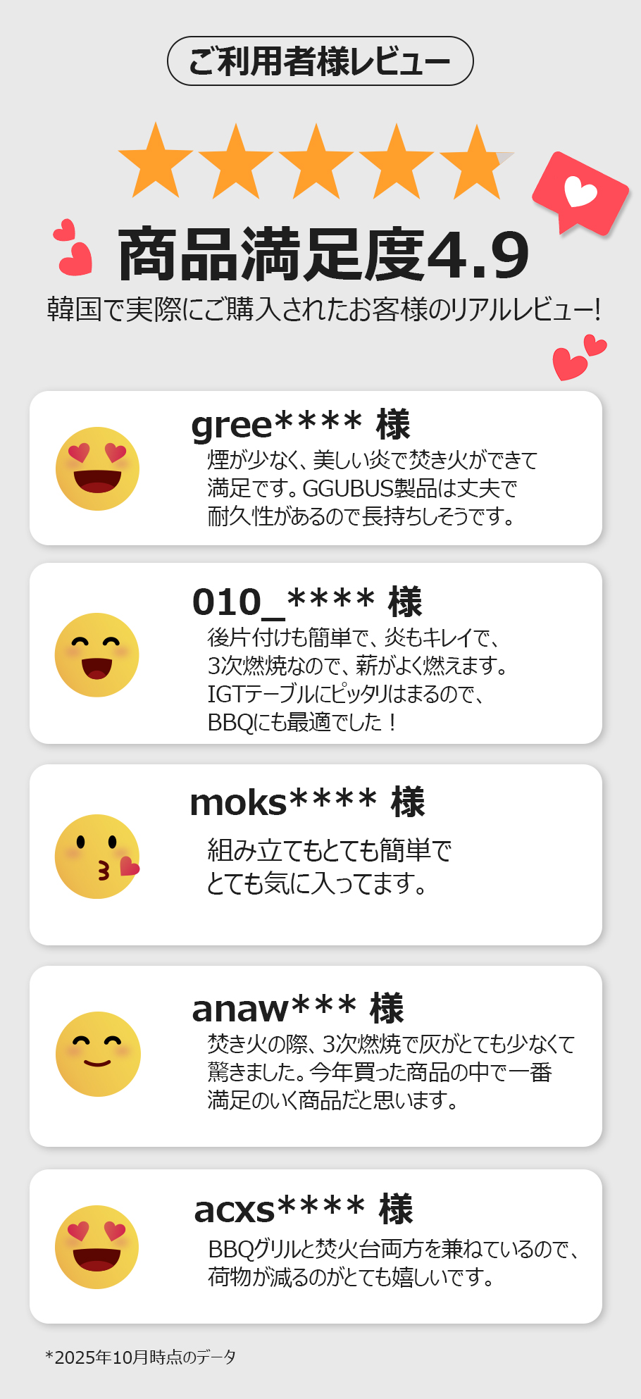 煙が苦手な方、焚き火の臭いが苦手な方にもおおススメです。